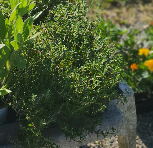Classic Thyme – Thyme smells so nice, it’s hard to skip. This classic herb grows into small cascading piles of fragrant foliage! As a perennial, it will return each year with a bit of help and trimming!