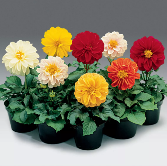 The Cheerful Dwarf This delightful little dahlia punches way above its weight! Famous for its compact, bushy habit, it bursts with a cheerful mix of brightly colored, fully double blooms. It stays perfectly sized for borders or patio pots, requiring no staking at all. If you want that classic, vibrant dahlia look without the hassle of managing tall, heavy stems, this is exactly what you need. A lovely, low-maintenance addition!