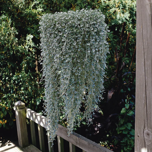 The Silvery Cascade This gorgeous foliage plant cascades like an absolute dream! Prized for its shimmering, velvety-silver leaves, this heat and drought-tolerant beauty can trail gracefully up to six feet long. It effortlessly spills over hanging baskets, retaining walls, and tall containers. If you want a stunning, low-maintenance trailing accent that makes all your brightly colored flowers pop, this is exactly what you need. Highly recommended!